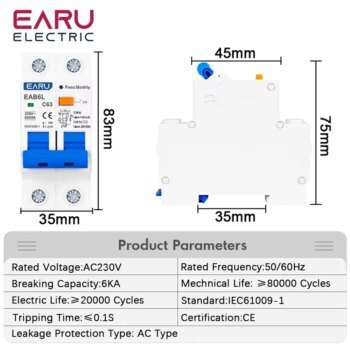 2P Type C RCBO residual current circuit breaker is designed to protect electrical circuits against overloads, short circuits and earth leakage currents in residential installations. It combines the functions of MCB, RCCB and RCD in a single device.