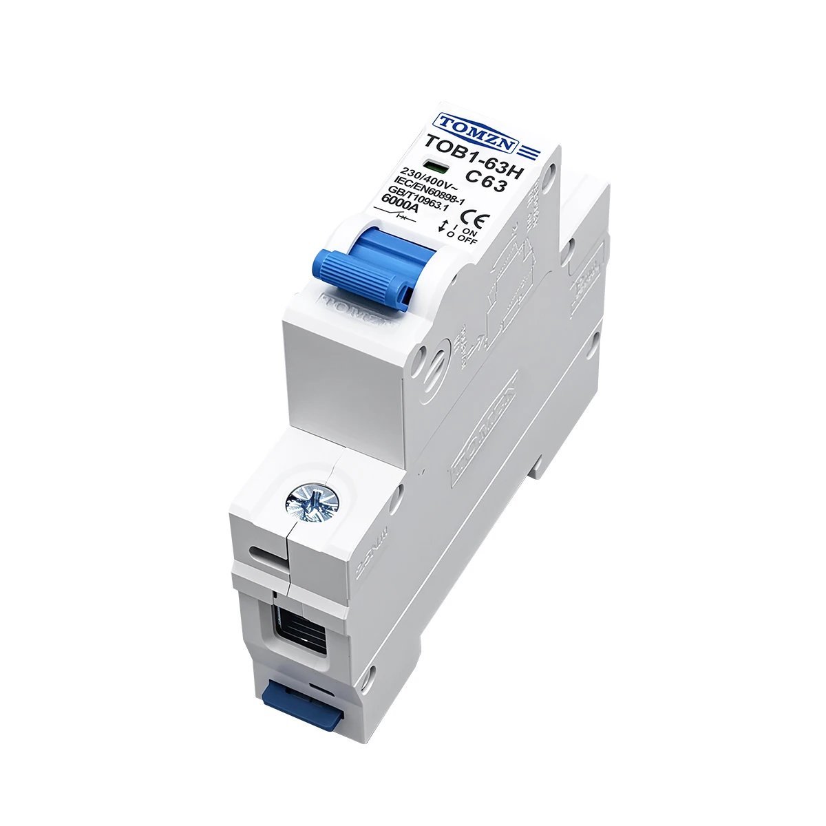 This circuit breaker operates on AC 230V single phase or up to 400V multi-phase systems at 50Hz/60Hz. Available in 1P, 2P, 3P and 4P configurations with rated currents from 3A to 63A. The C curve tripping characteristic is suitable for general purpose loads with moderate inrush current such as lighting, power tools and small motors. The housing is made from flame-retardant and impact-resistant plastic and is designed for standard DIN rail mounting.