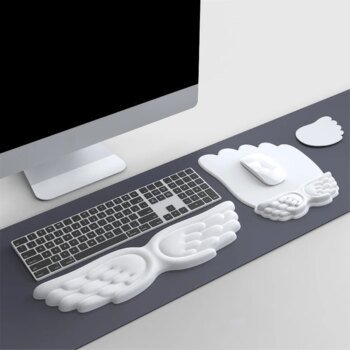 Angel wing keyboard and mouse wrist rest set designed to improve comfort during long hours of typing and gaming. The ergonomic shape supports natural wrist alignment and helps reduce strain when working on a PC or laptop.