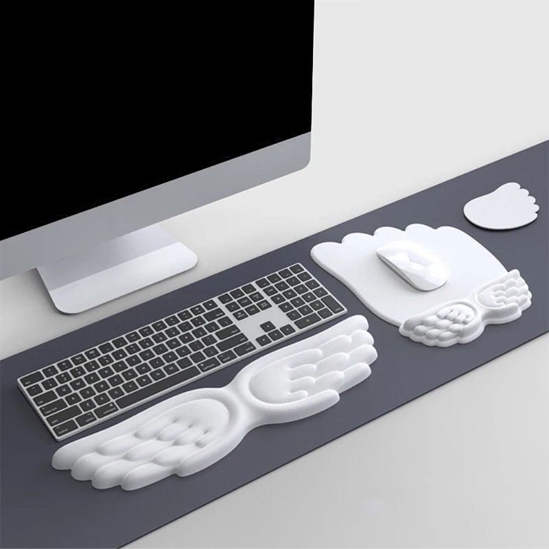 Angel Wing Wrist Rest Set Keyboard Mouse Pad Memory Foam Ergonomic