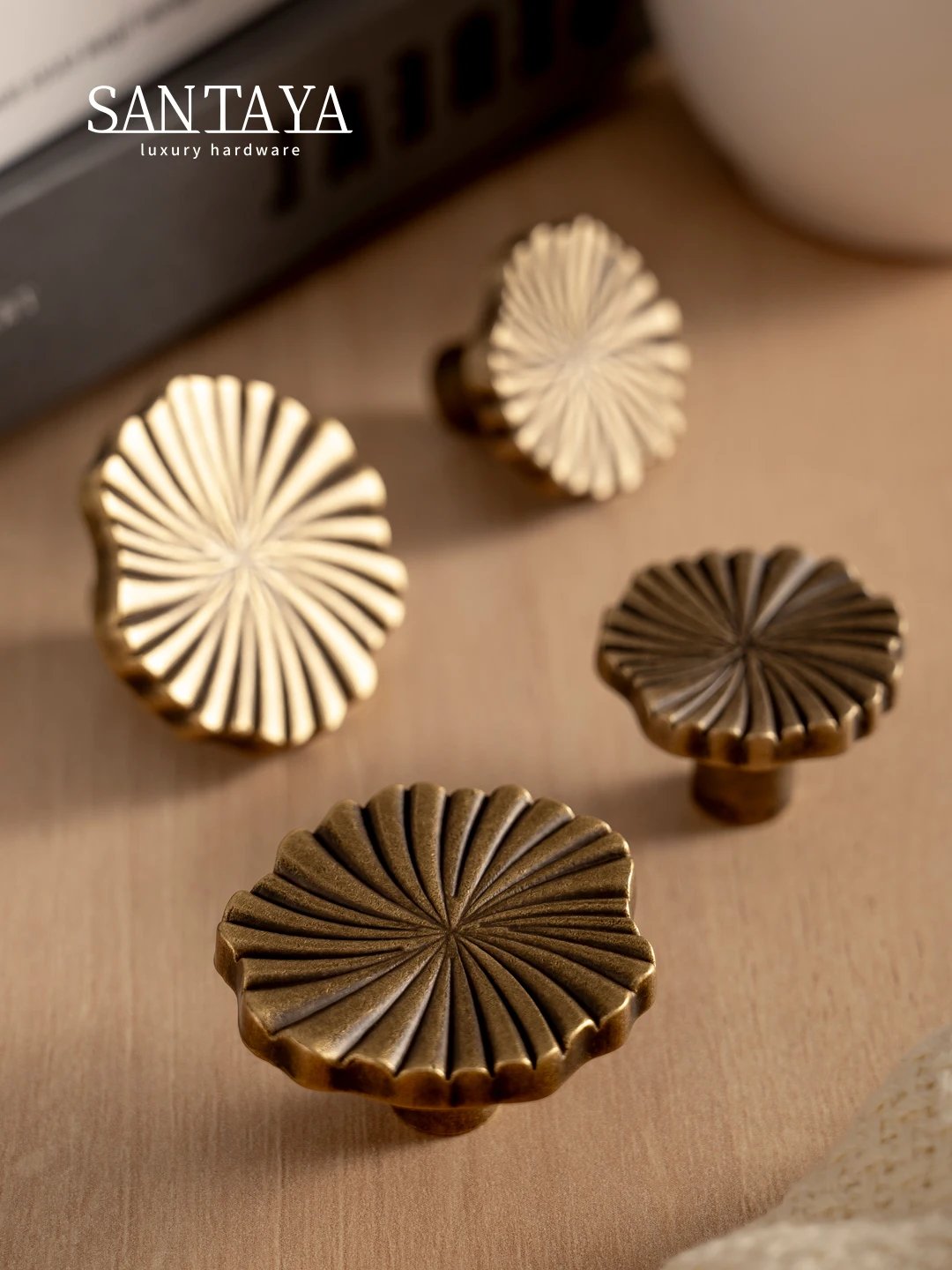 Antique brass cup pull handles and round drawer knobs made from brass, designed for kitchen cupboards, bathroom cabinets, dressers and drawers. The flat vintage cup shape gives furniture a classic look while remaining practical for everyday use.