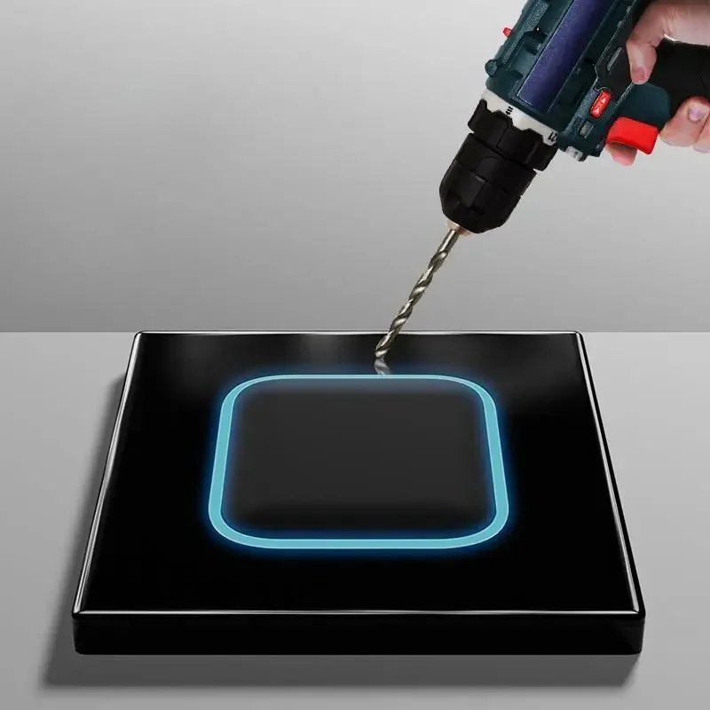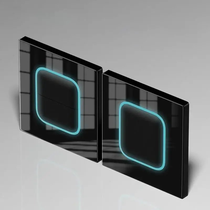 This black tempered glass wall unit combines a modern switch or socket design with optional USB and Type-C fast charging functionality. It is designed to match modern interiors while offering practical everyday use.