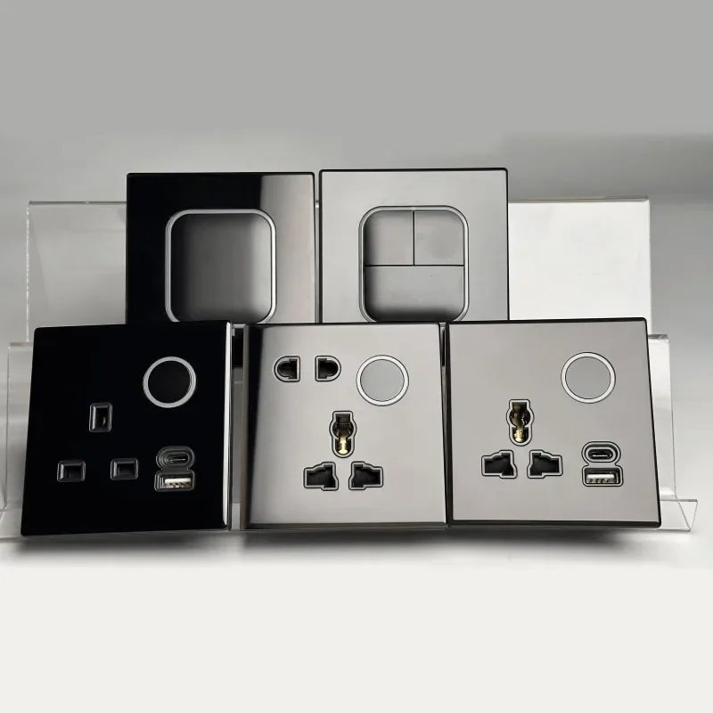 black glass wall switch UK, tempered glass socket usb c, modern wall switch black glass, usb wall socket UK fast charging, led wall switch panel, black electrical outlet glass finish, type c wall socket UK, luxury wall switch socket