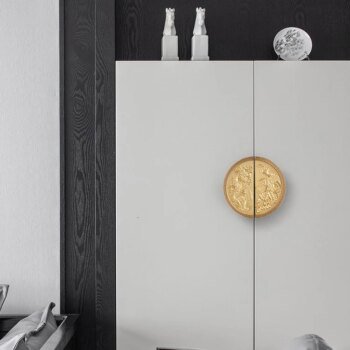 Made from solid brass with a gold finish, these handles offer both durability and a detailed ornamental look. The round shape combined with engraved patterns adds depth and texture, making them stand out on cabinets, drawers or wardrobe doors. Available in multiple sizes and hole spacings to fit different furniture types.