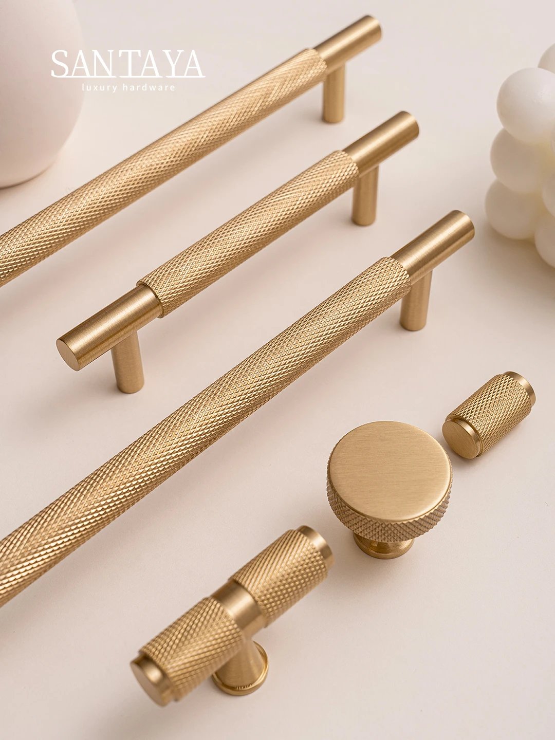 These handles are made from high-quality brass with a brushed finish that resists fingerprints and everyday wear. Available in multiple sizes including 96mm, 128mm, 160mm, 224mm, and 320mm hole spacing, as well as knob and T-bar options, they offer flexibility for different furniture types and layouts.