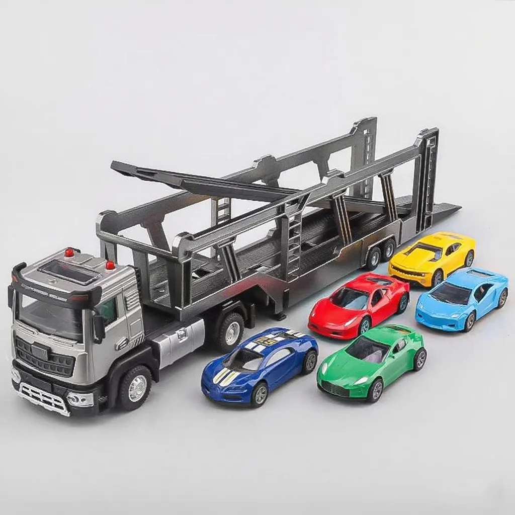 1:40 Diecast Double-Decker Car Carrier Truck with Lights & Sound