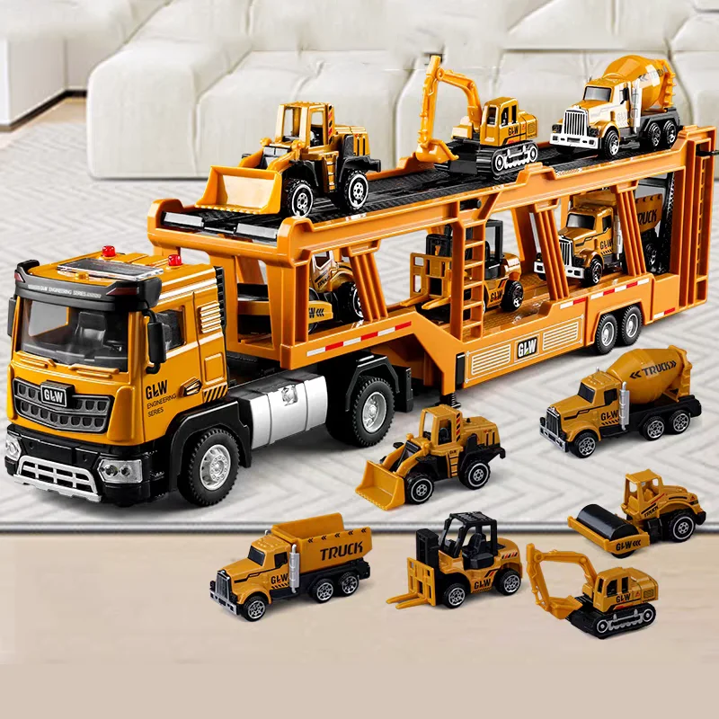 1:40 diecast double-decker car carrier truck toy with lights and sound