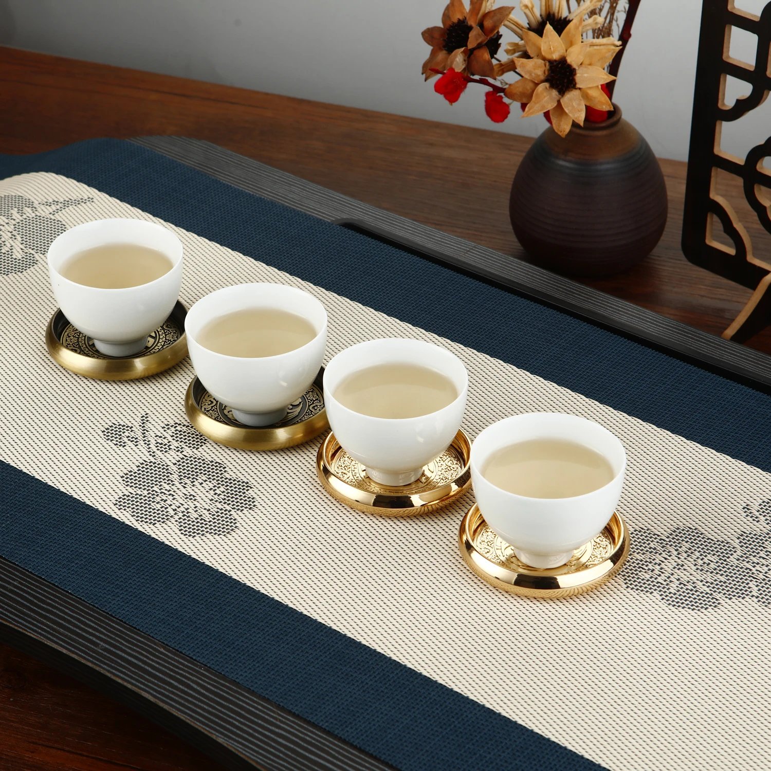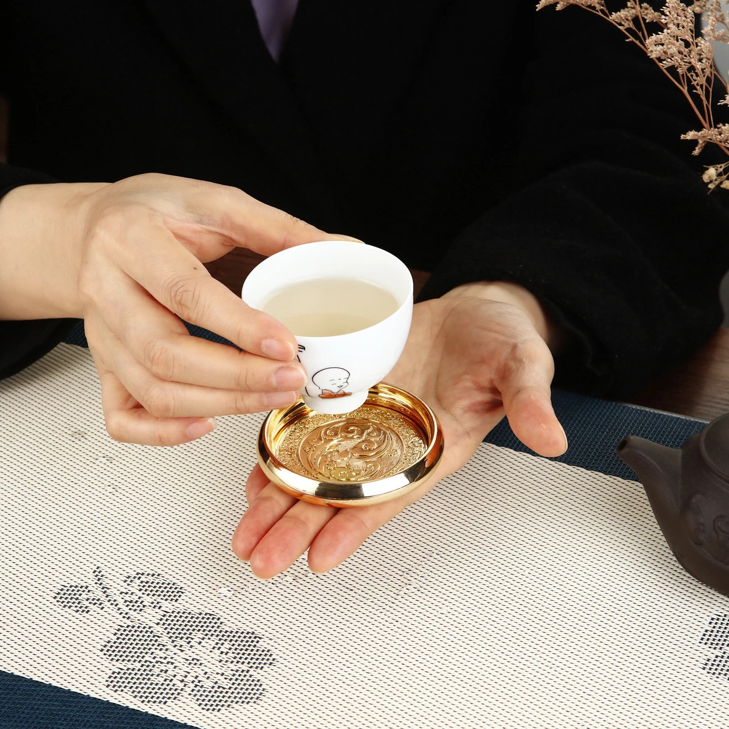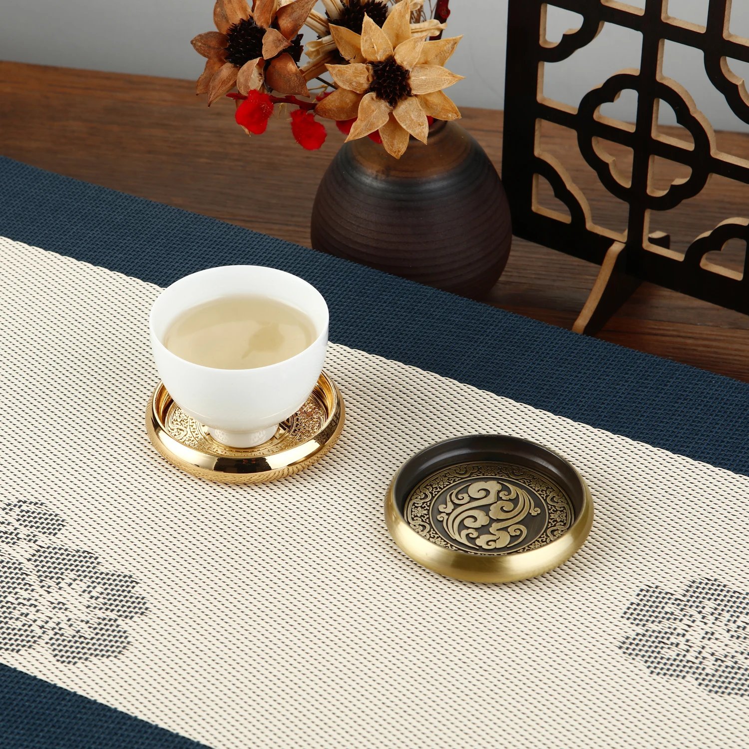 Metal Tea Cup Coaster Chinese Style Drink Cup Coaster