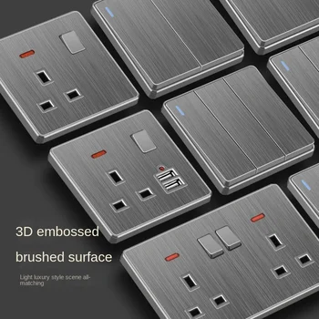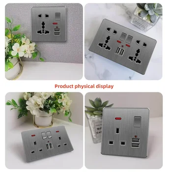 Nordic style grey wall socket British 13A dual outlet with USB ports