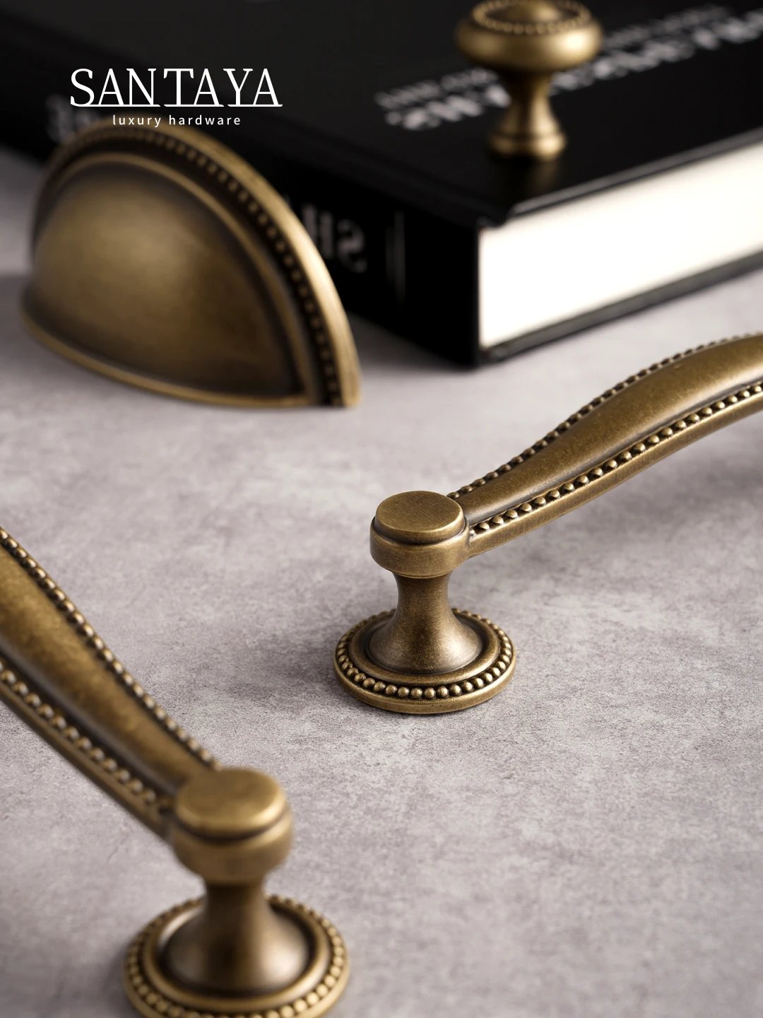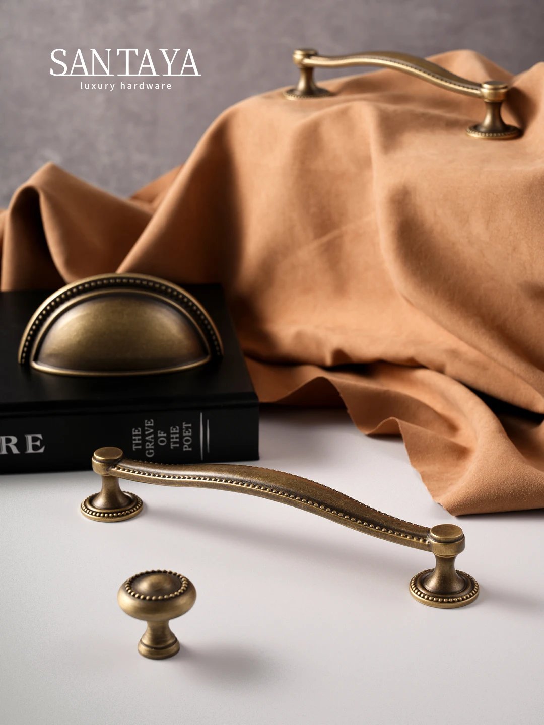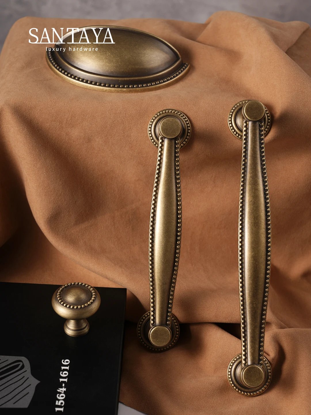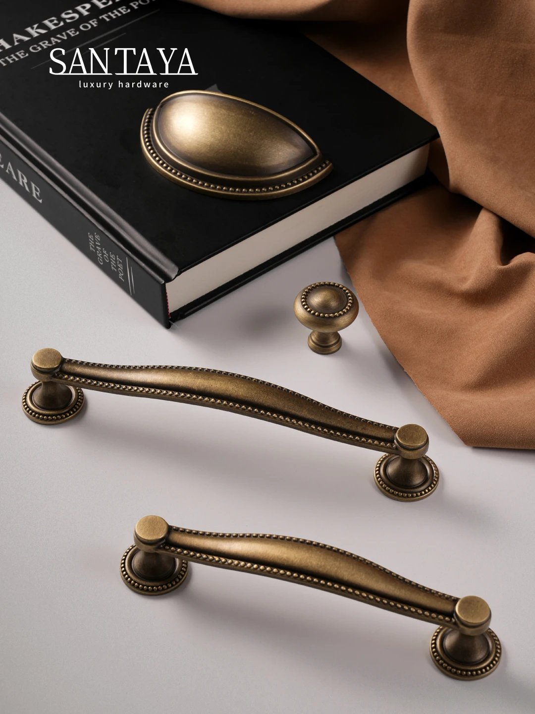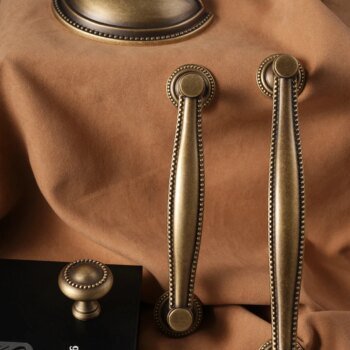 Made from brass, this furniture hardware range includes a 30mm knob and shell pull handles with 128mm and 160mm hole spacing. The antique brass finish adds a warm, timeless touch, while the solid brass construction provides durability for everyday use on cupboards, cabinets and drawers.