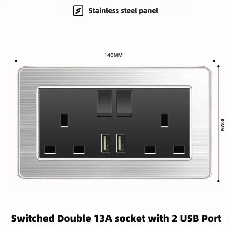 Upgrade your home or office with this premium stainless steel wall switch and socket ā a perfect combination of durability, style, and modern functionality. Designed with LED indicator lights and USB Type-C 18W fast charging ports, this universal switch panel provides convenient power access while maintaining a sleek, contemporary look.