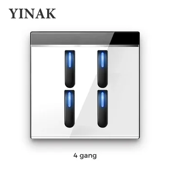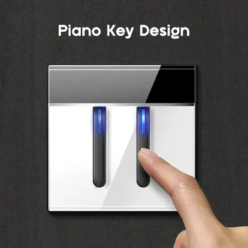 Tempered Glass Piano Key Light Switch 1-4 Gang 1 2 Way LED Indicator Wall
