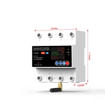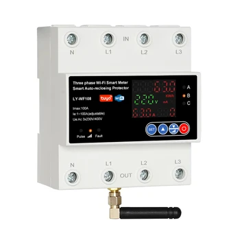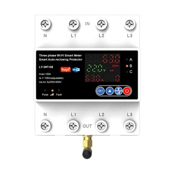 Tuya WiFi 4P 100A 3-Phase Auto-Reclosing Over/Under Voltage Protector Meter