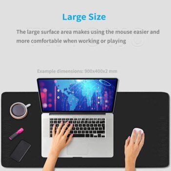 The soft fabric top layer supports precise tracking for optical and mechanical mice. It offers low friction for fast movement while maintaining control during gaming, browsing or office work. The extended format allows full-size keyboard placement with enough room for comfortable mouse movement.