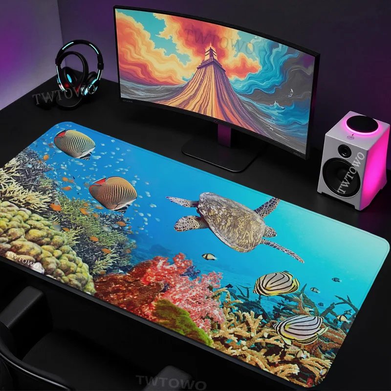 Underwater world gaming mouse pad in extended XL and XXL sizes, designed to cover a larger desk area for both keyboard and mouse. The ocean-inspired design adds character to your setup while providing a smooth and stable surface for everyday use.