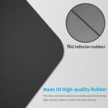 The base is made from non-slip natural rubber to keep the mat firmly in place during intense use. Stitched edges help prevent fraying and maintain the shape over time. The flexible construction makes it easy to position on different desk surfaces.