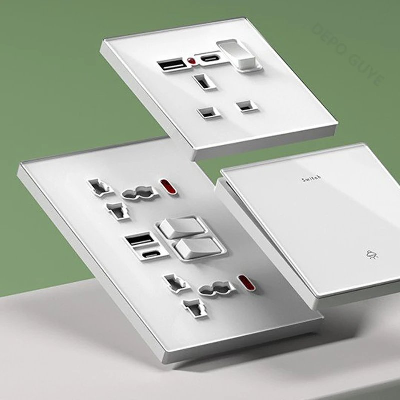 USB Type-C Wall Socket 20W Fast Charging UK Dual Switch Outlet