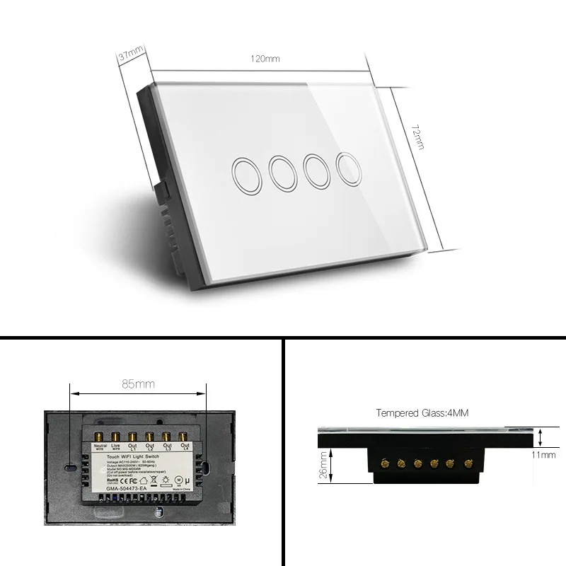 - 1 Ć Wi-Fi Smart Touch Light Switch (choose 1/2/3/4 gang)